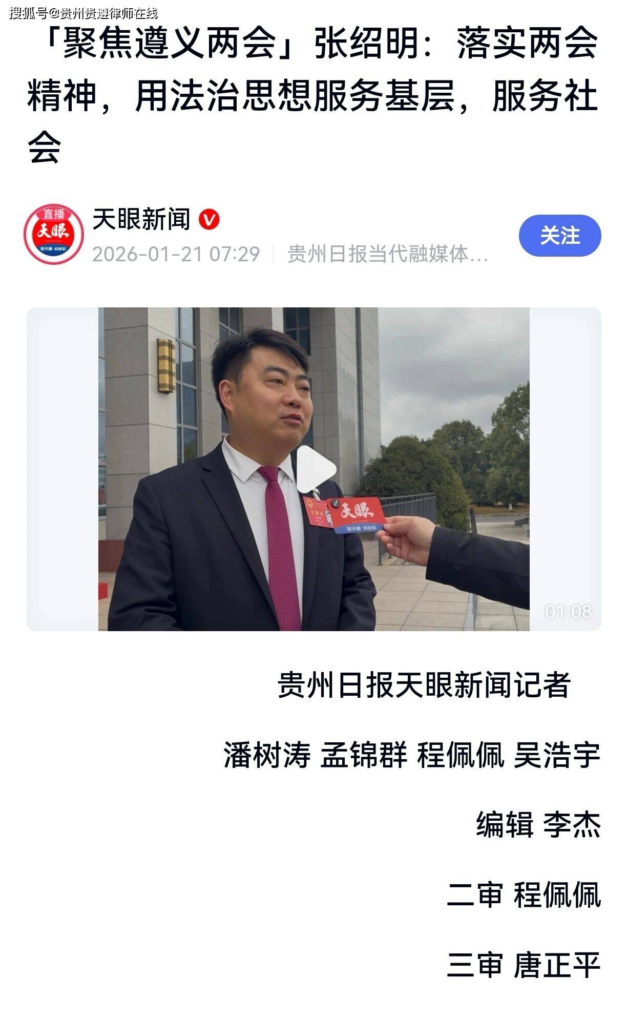 • 2026年1月21日,出席遵义市第六届人民代表大会第六次会议的市人大代表、贵州贵遵律师事务所主任张绍明律师认真审议政府工作报告,积极建言献策,共谋发展大计。