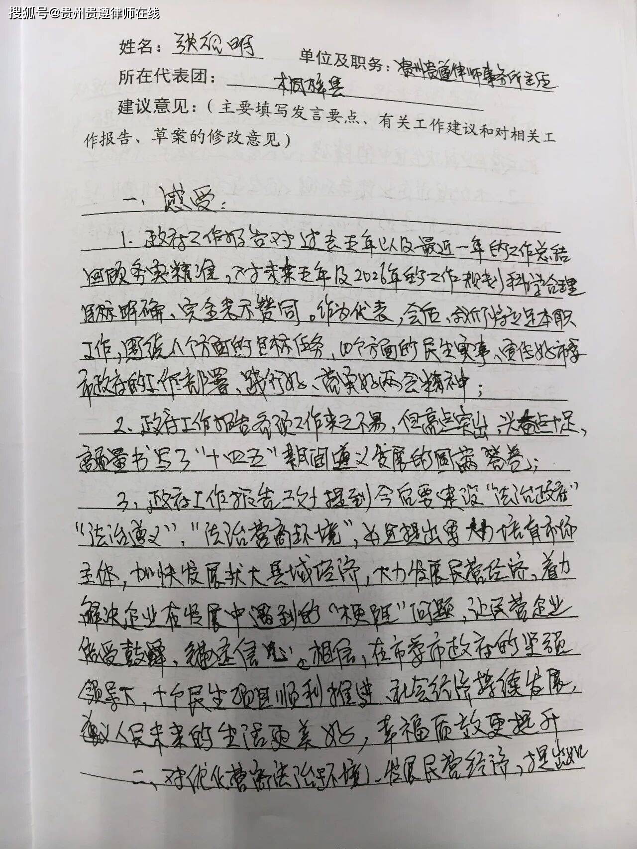 在桐梓县代表团,贵州贵遵律师事务所主任张绍明律师说: