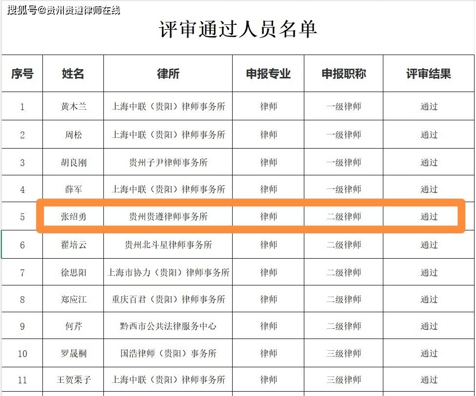 • 近日,贵州省司法厅发布2025年度律师系列专业技术职务任职资格评审委员会评审结果公示,贵州省2025年度律师职称评选揭晓,贵州贵遵律师事务所党支部书记张绍勇律师获评“二级律师”,成为桐梓县唯一一名具有副高级职称的专职律师。