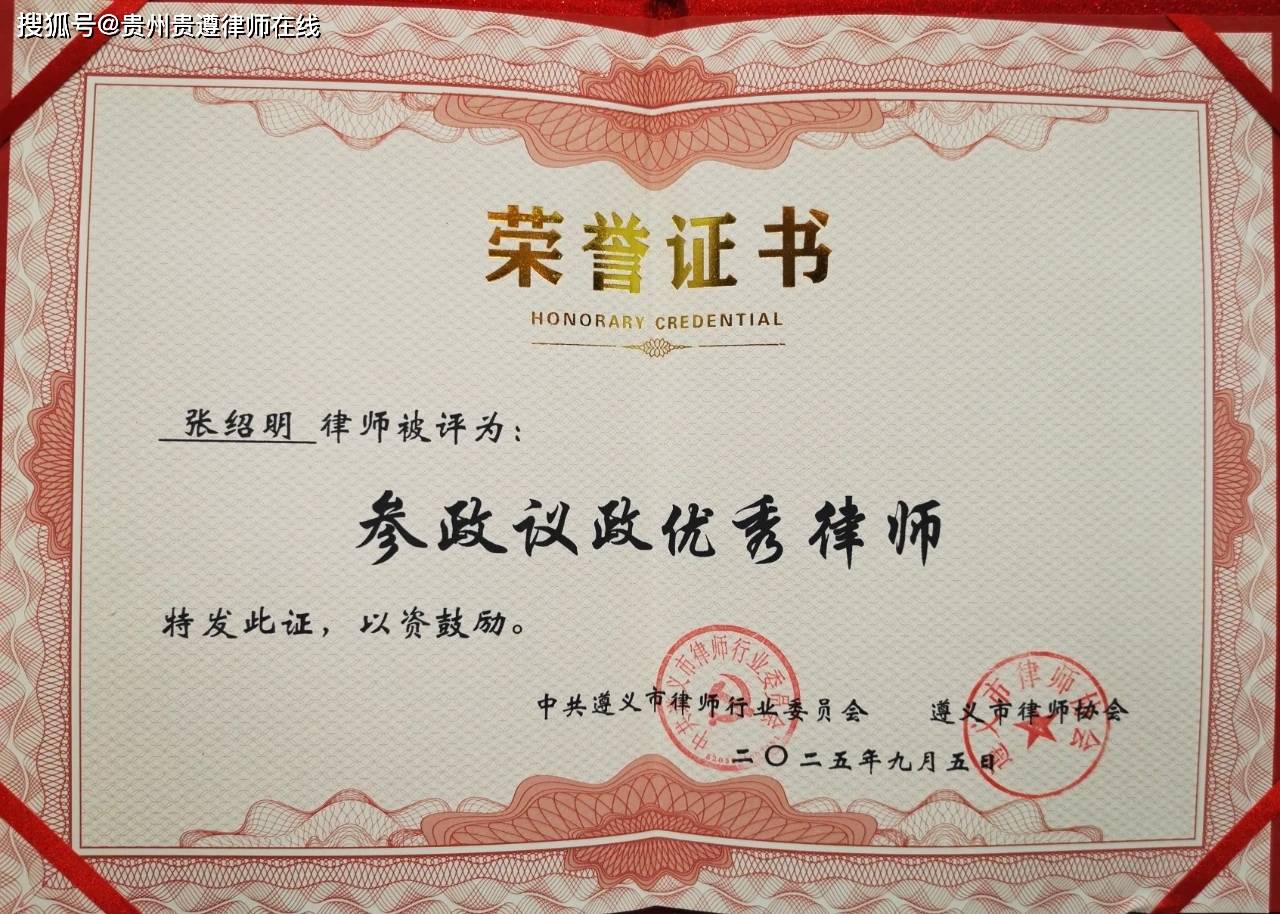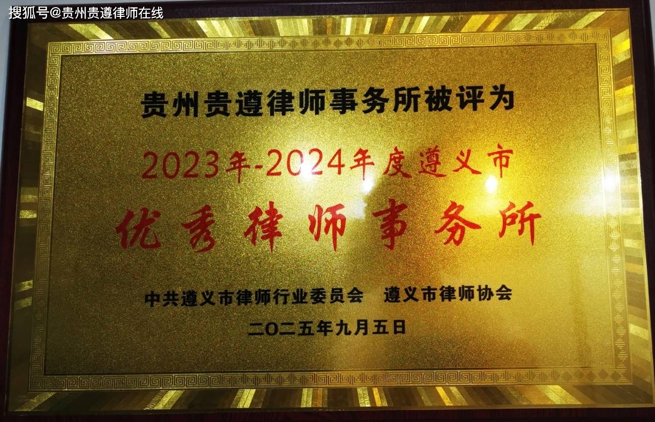 2025年,贵州贵遵律师事务所荣获“2023-2024年度遵义市优秀律师事务所”称号;律所主任张绍明获评“遵义市劳动模范”“贵州省律师行业头雁引领律师”“遵义市参政议政优秀律师”“遵义市优秀首席法律咨询专家”,以及荣获“全国自强模范”表彰。律所党支部也先后获评省市县三级“先进基层党组织”,并且有彭晓艳、张绍勇等多名律师在省、市律师行业评优中获奖,彰显了团队成效与合理,为服务地方经济社会发展提供了有力法治保障。