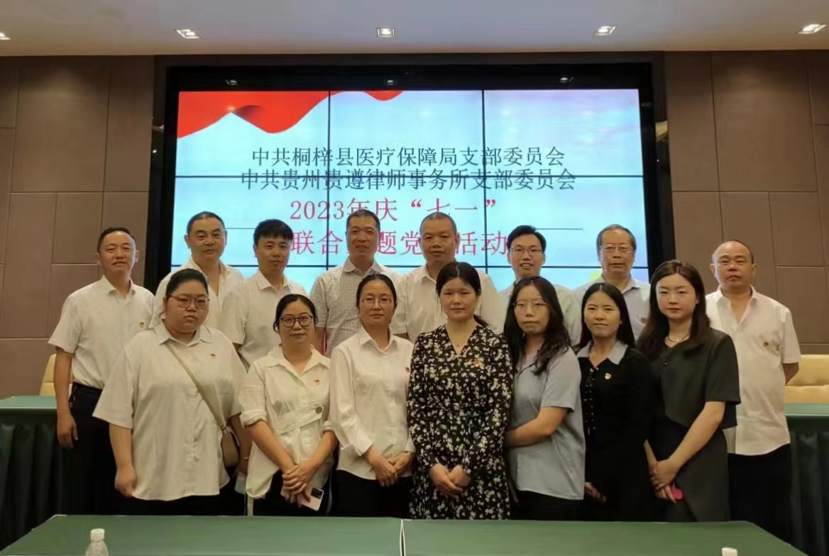 当天下午2时许,桐梓县医保局党支部在该局党组书记陈庆强的带领下,一行10余人按照活动方案安排,准时来到贵州贵遵律师事务所会议室,与贵遵律师事务所党支部的党员律师们一道,通过实地参观,现场交流,会议宣讲等方式,共同开展庆祝2023年“七一”建党节联合主题党日活动。
