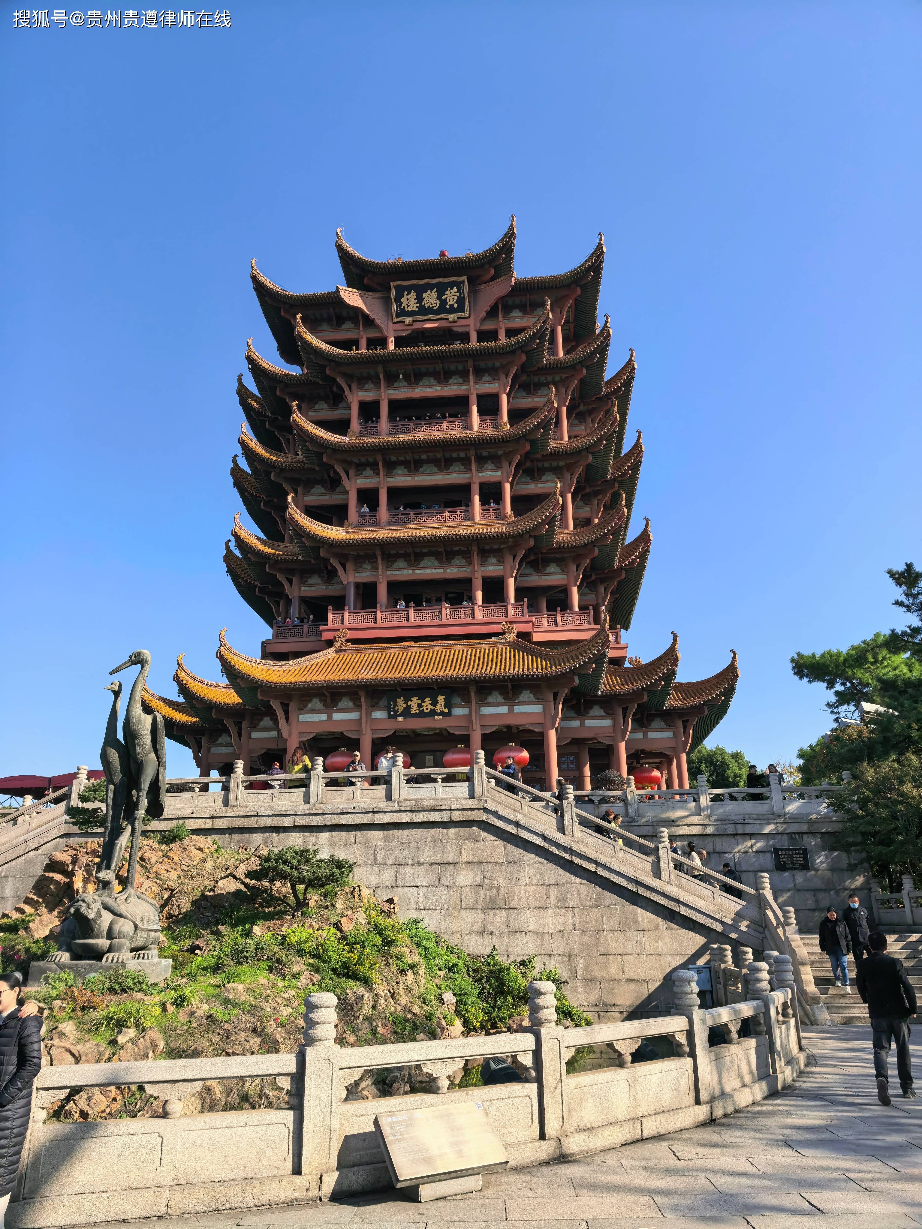 黄鹤楼巍然耸立于蛇山之巅,飞檐翘角覆以金色琉璃瓦,登楼远眺,长江如带,城市尽收眼底。这座被喻为“天下江山第一楼”的黄鹤楼,自唐代以来便是文人墨客吟咏之地,崔颢题诗、李白搁笔的典故,犹在耳畔。我伫立楼前,仿佛听见千年的钟声回荡在江风之中。