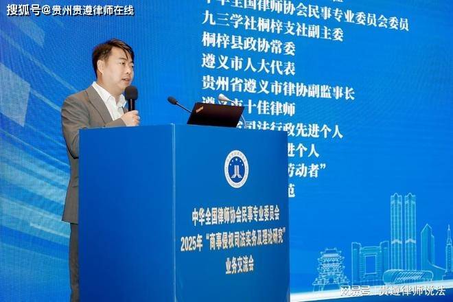 此次会议汇聚了来自全国各地的法律专家、学者及律师代表。贵州省律师协会派出了四位代表参会。其中,中华全国律师协会民事专业委员会委员、贵州省律师协会民事专业委员会主任,贵州秉尚律师事务所主任蒋国军,以及遵义市律师协会副监事长,贵州贵遵律师事务所主任张绍明律师,均在会议上作了专题业务交流发言。