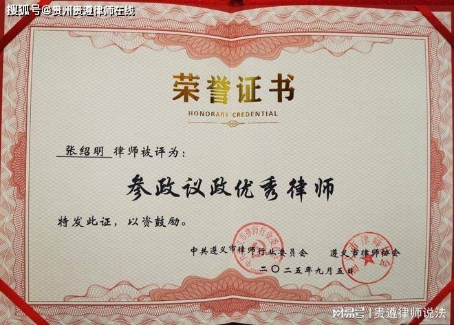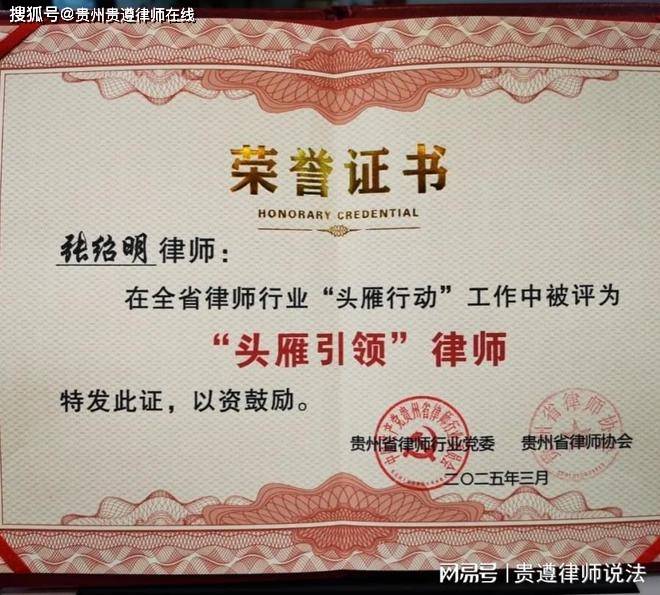 贵州贵遵律师事务所主任张绍明经过市县推荐,获评贵州省律师行“业头雁引领”律师表彰。
