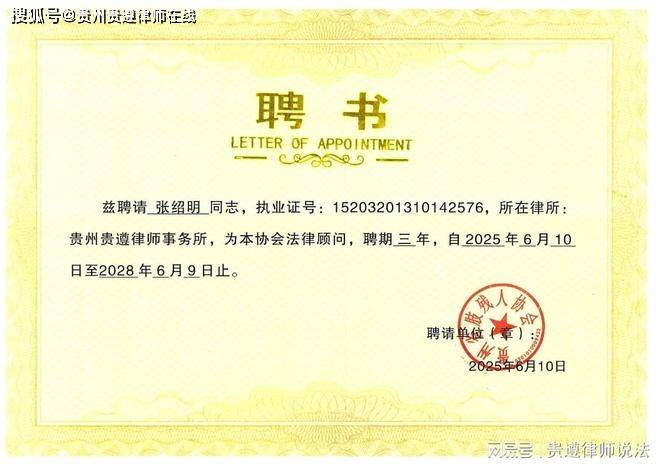 近日,贵州省肢残人协会经主席办公会研究决定,正式聘请张绍明律师担任协会常年法律顾问,聘期为三年,自2025年6月10日起至2028年6月9日止。张绍明律师现执业于贵州贵遵律师事务所,具备扎实的法律专业素养和丰富的实务经验。此次受聘为协会常年法律顾问后,他将依托其专业能力,为协会提供全方位的法律支持与服务,包括但不限于法律咨询、合同审查、法律风险防范、纠纷调解及法律培训等工作,为协会各项业务的稳健开展保驾护航。