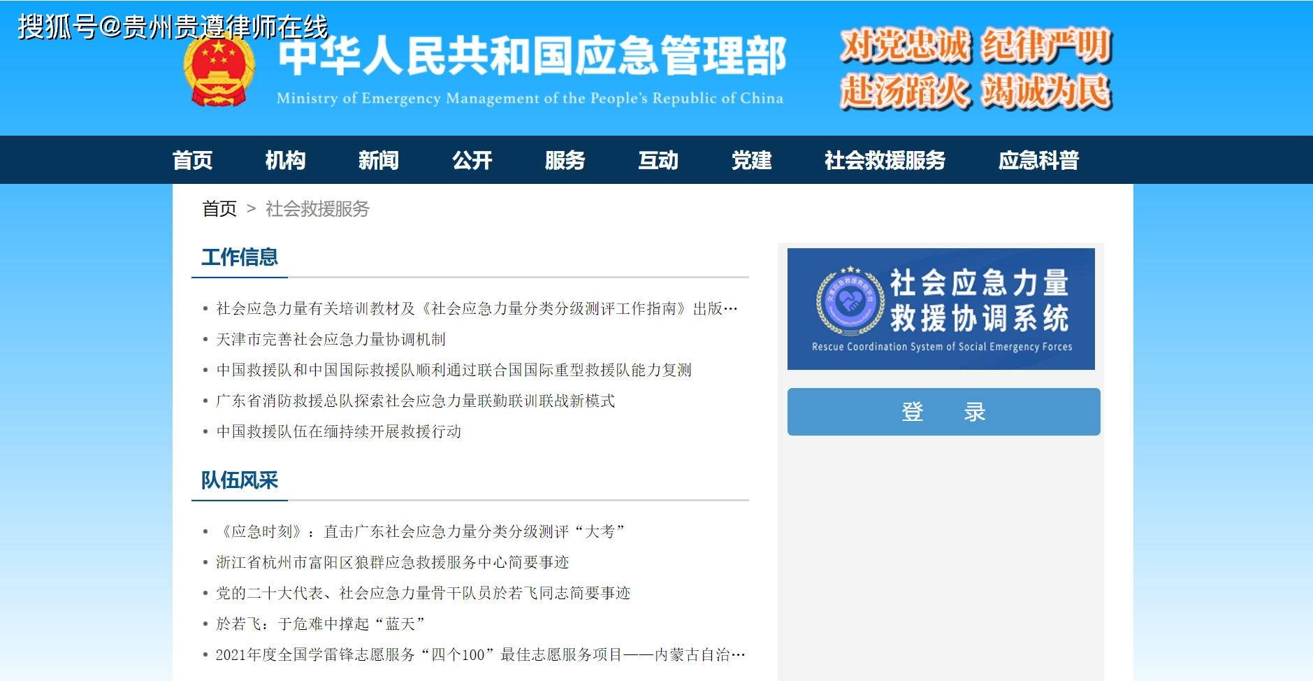 民间救援组织可登陆应急管理部政府网站,进入“救援服务平台”栏目访问该系统。
