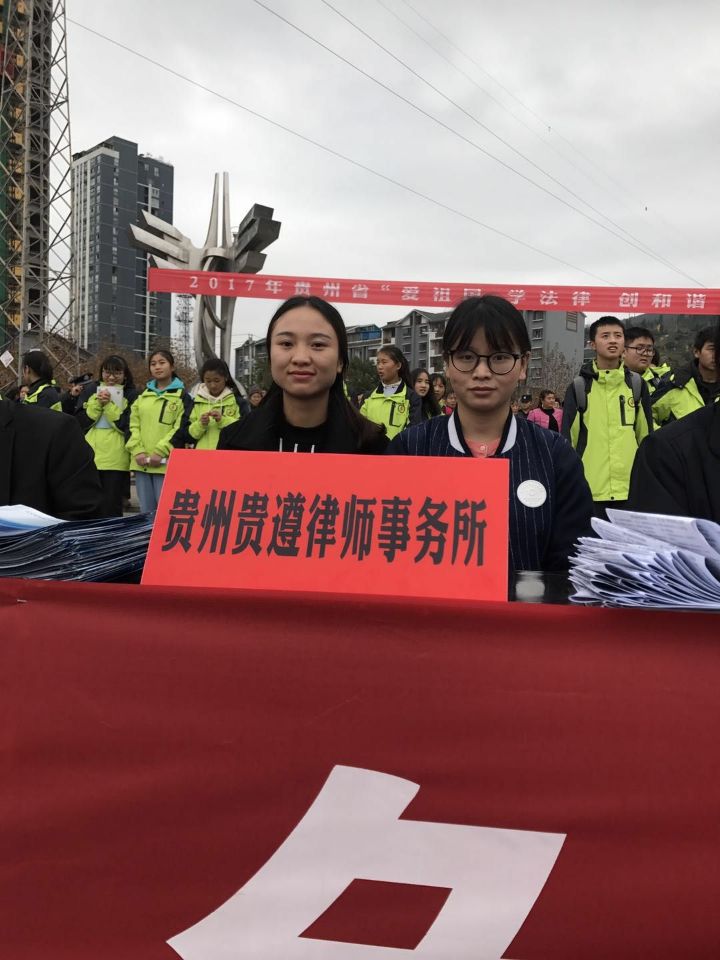 (图为贵州贵遵律师事务所律师为现场人员发放法律宣传手册)