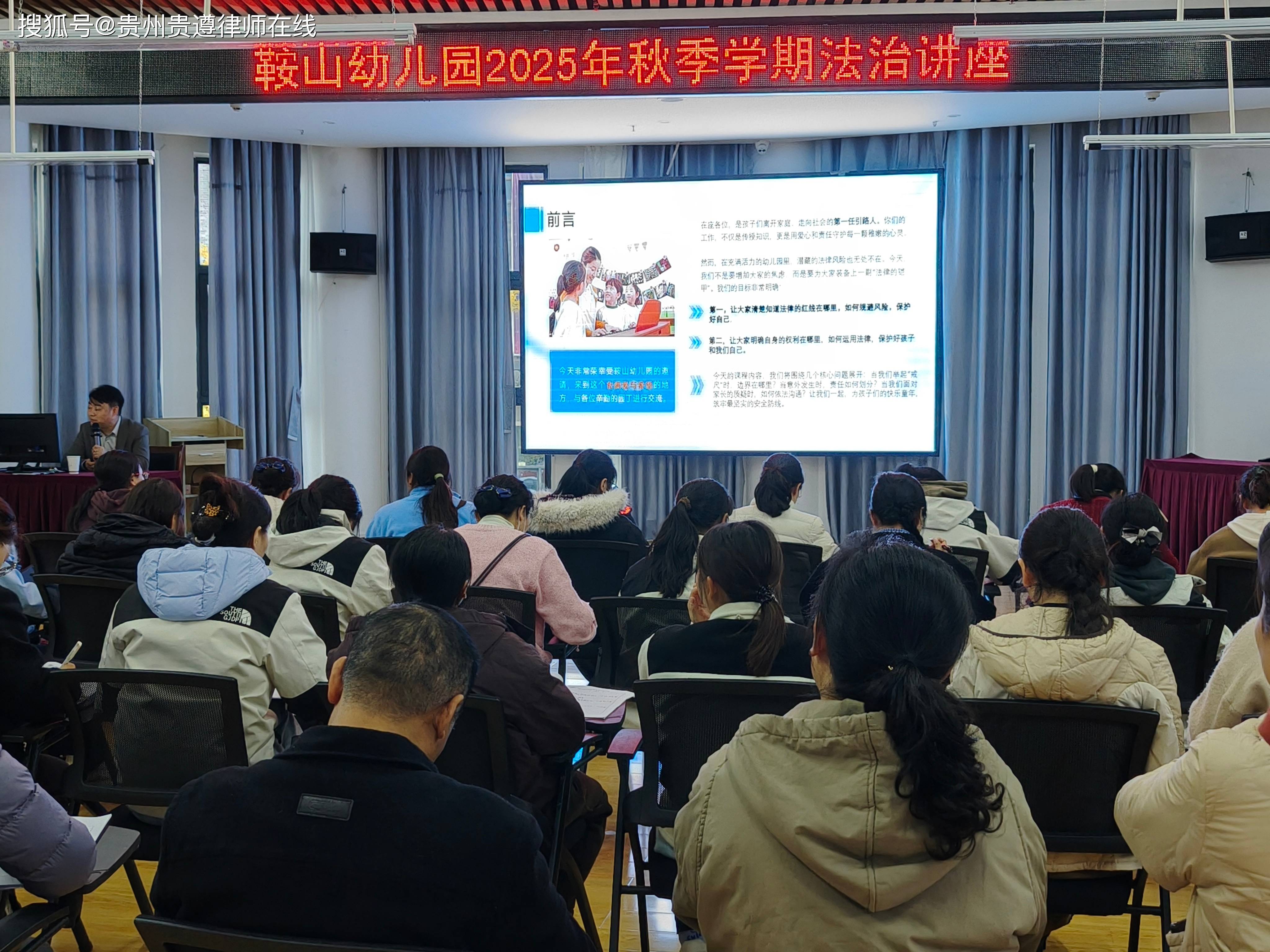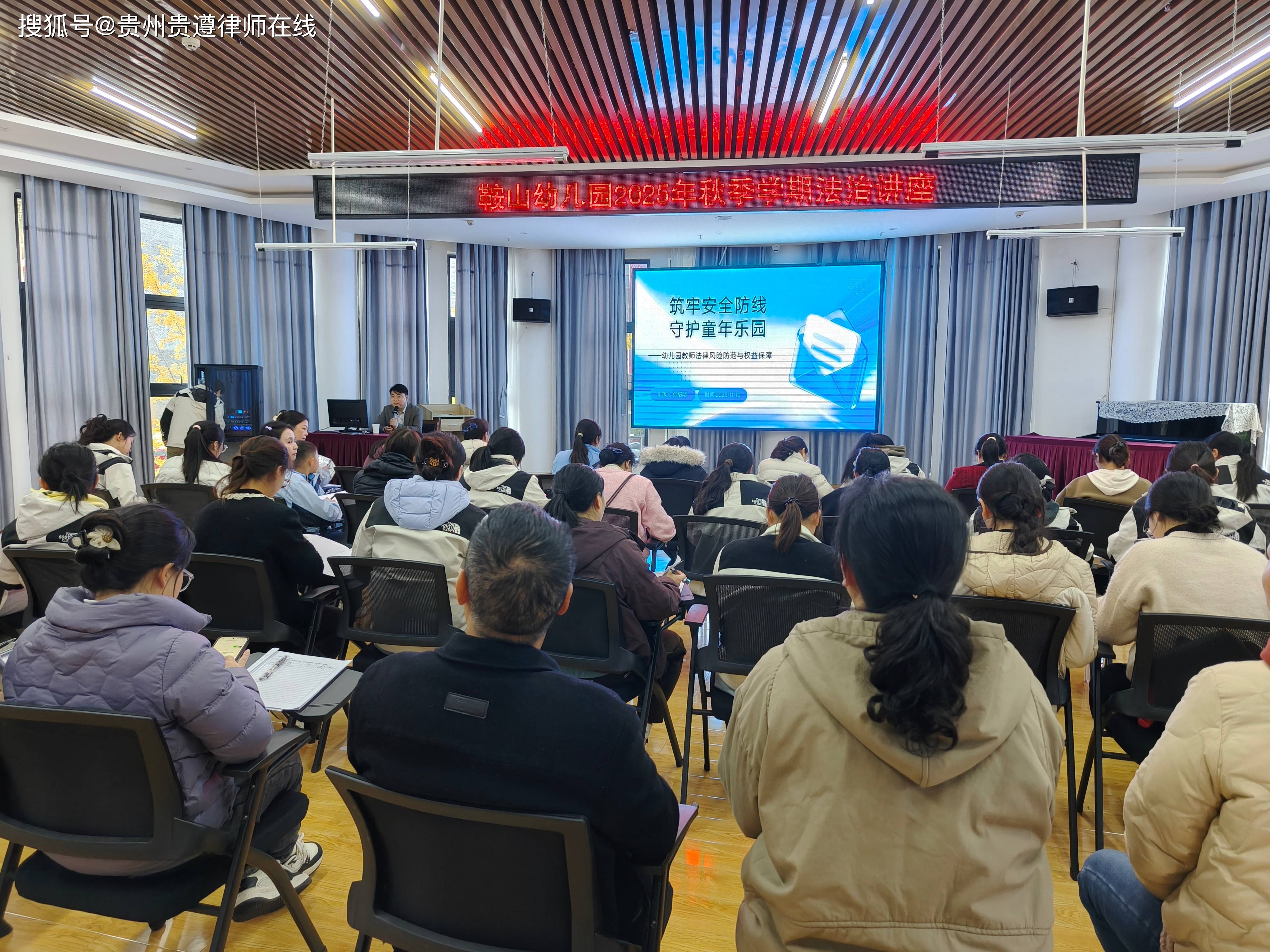 筑牢安全防线,守护童年乐园|贵遵律师为鞍山幼儿园开展法治培训为进一步增强幼儿园教师的法律意识,提升校园安全管理水平,保障教师合法权益。2025年11月10日,贵州贵遵律师事务所张绍明律师受邀到桐梓县鞍山幼儿园开展《幼儿园教师法律风险防范与权益保障》专题法治培训,并且围绕教师的角色与责任、安全风险红线、权益保障等内容进行了深入讲解,着力构建安全和谐的法治校园。