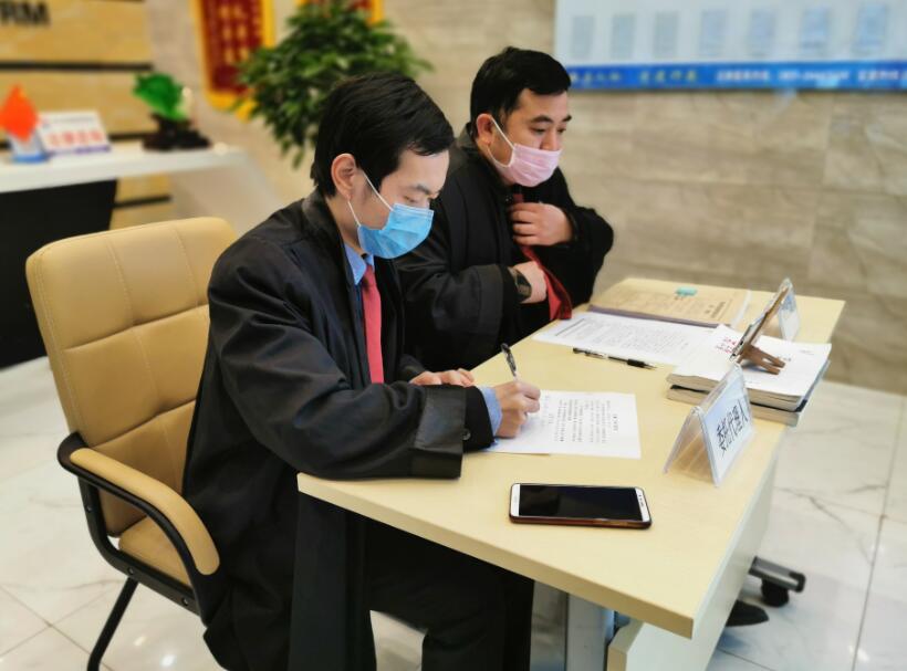 图为:2020年2月12日,在贵州贵遵律师事务所办公室,娄俊、陈建律师正在通过“手机法庭”跨省跨区域云上开庭,参与审理远在河南省濮阳市中级人民法院的民事二审案件。(贵州贵遵律师事务所品牌部:张绍明、彭晓艳、王小红 供稿)