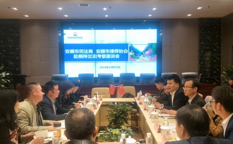 2019年10月31日,安顺市司法局党组成员、副局长、市律师行业党委书记戴波、安顺市律师协会会长刘丹灵一行,到桐梓县交流考察律所规范化建设和律师党建工作。
