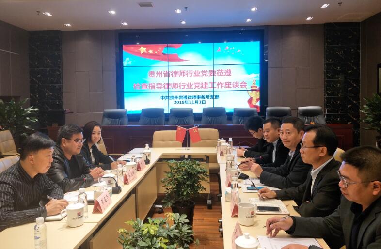 图为检查组一行在贵州贵遵律师事务所党支部检查党建工作。(贵州贵遵律师事务所党支部:韩朝飞、金焱焱 供稿)