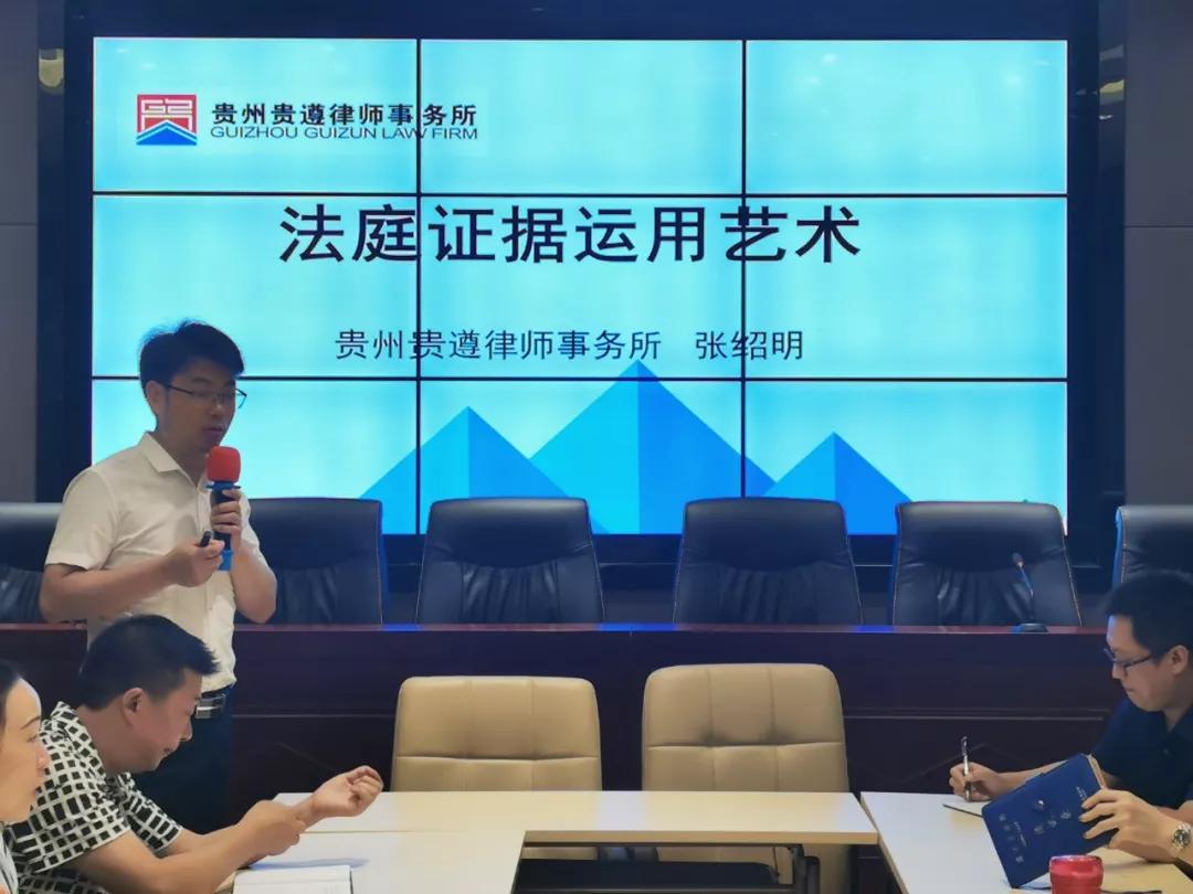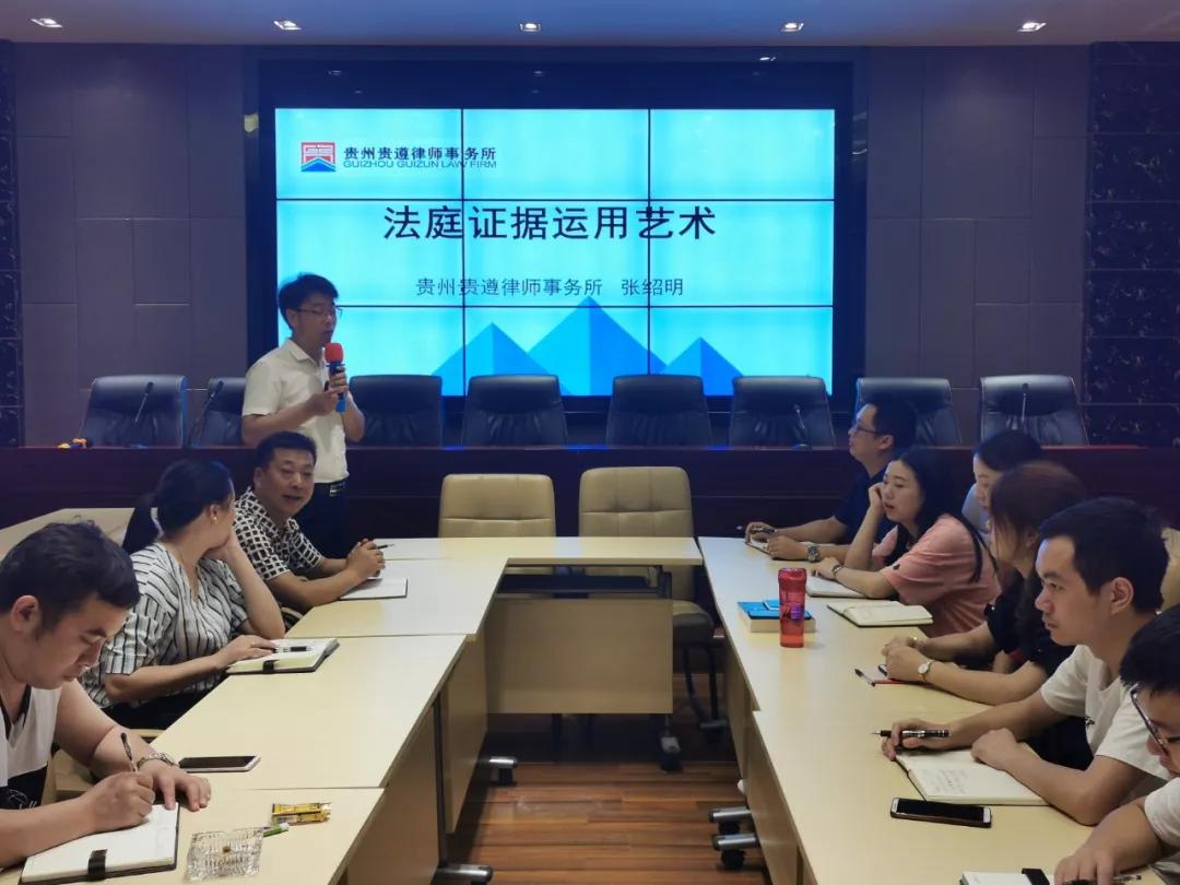 4、2019年8月10日,贵州贵遵律师事务所举办了出庭律师“法庭证据运用艺术”专题培训,提升出庭律师的执业技能,以及庭审证据运用艺术。