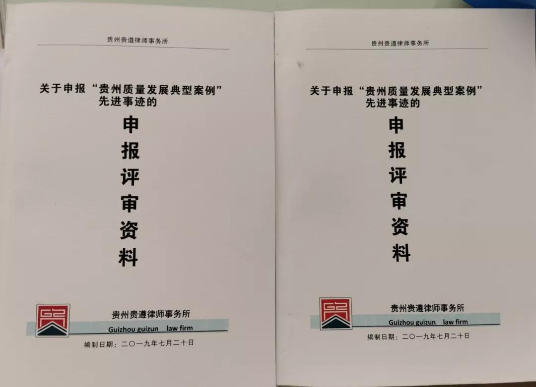 3、2019年7月20日,贵州贵遵律师事务所推出的“案件质量12315机制”被遵义市司法局推荐,参评贵州省2019年度“质量发展典型案例”。