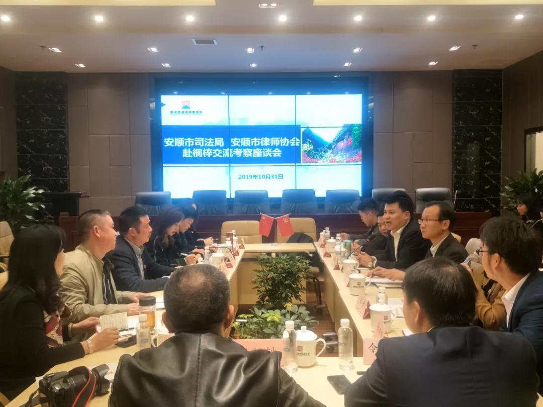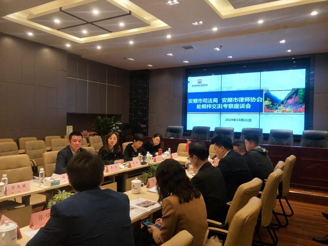 10、2019年10月31日,安顺市司法局党组成员、副局长、市律师行业党委书记戴波、安顺市律师协会会长刘丹灵一行,到桐梓县交流考察律所规范化建设和律师党建工作。