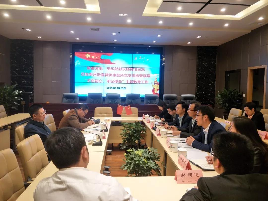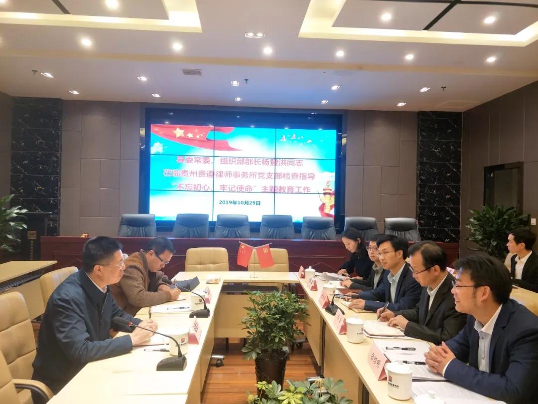 9、2019年10月29日,中共桐梓县县委常委、组织部部长杨登洪到贵州贵遵律师事务所党支部检查指导“不忘初心、牢记使命”主题教育工作。
