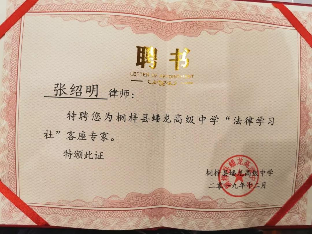 1、2019年8月1日,贵州省遵义市成立“普法讲师团”,贵州贵遵律师事务所律师张绍明受聘担任讲师,成为桐梓唯一一个入选的律师。