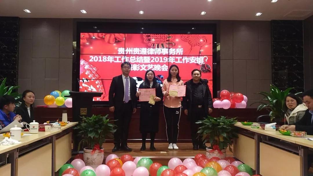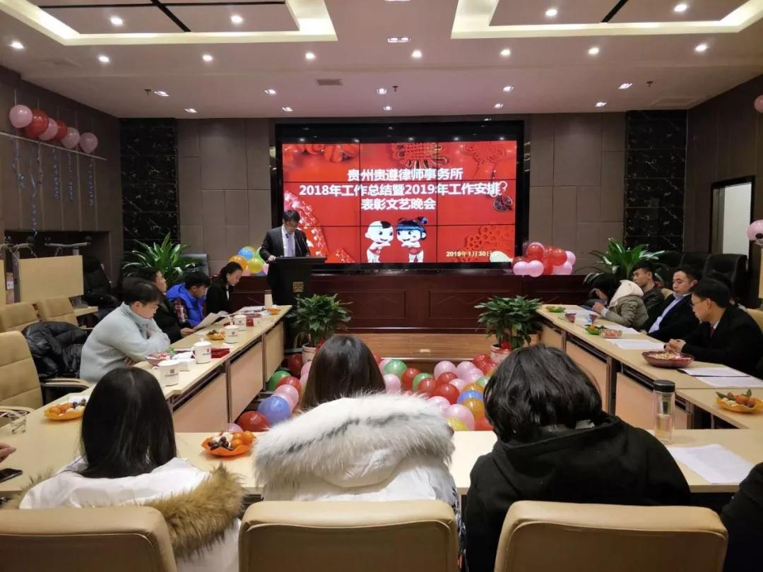 6、 2019年1月30日,贵州贵遵律师事务所召开2018年度工作总结表彰及2019年工作安排文艺晚会,对过去一年的工作进行回顾,对新一年的工作进行了安排和部署,并对2018年度优秀律师进行了表彰。