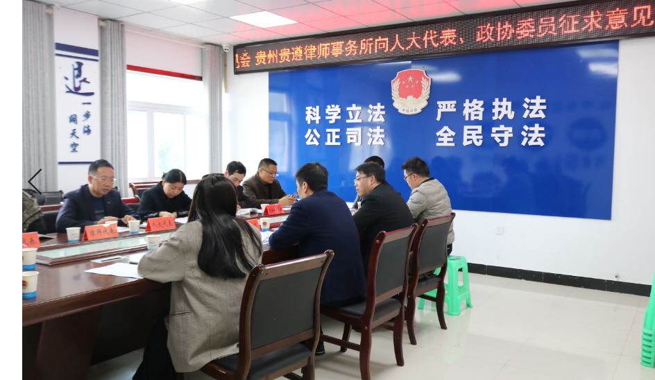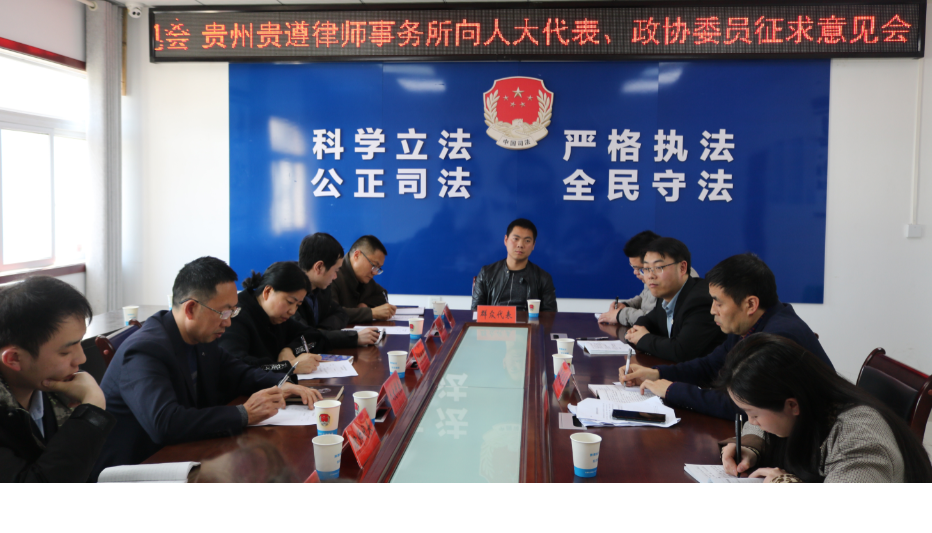 2021年3月23日,贵州贵遵律师事务所在桐梓县司法局召开征求意见会,公开“开门纳谏”,征求人大代表、政协委员、社区代表、群众代表、以及律师同行的意见建议。桐梓县司法局政工科长娄飞等领导列席了此次征求意见会。