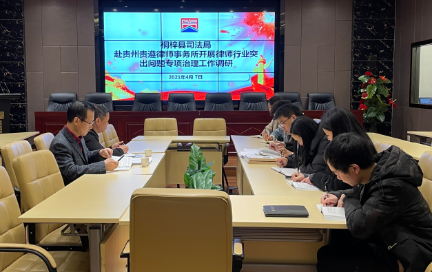 2021年4月7日,桐梓县司法局赴贵州贵遵律师事务所开展律师行业突出问题专项治理督导。