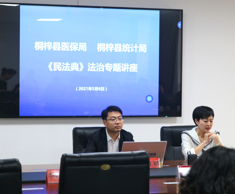 2021年5月6日,桐梓县医疗保障局、桐梓县统计局联合开展《民法典》等法治专题讲座,营造法治新风尚。