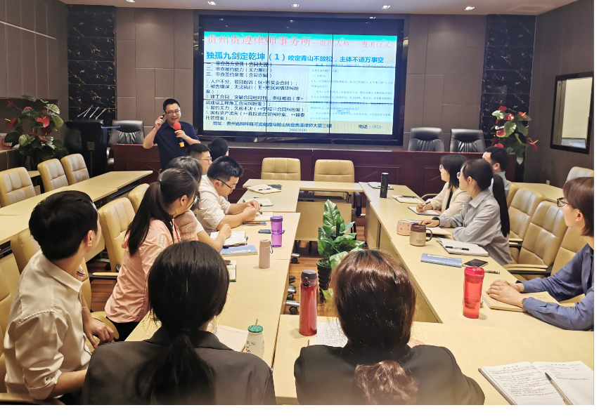 据介绍,为全面提升律师的综合素质,提高律师的合同审核时效,贵州贵遵律师事务所决定开展每周一专题业务学习活动,并推行“人人上讲堂,个个当讲师”系列培训计划,组织律师开展业务轮训和业务培训。