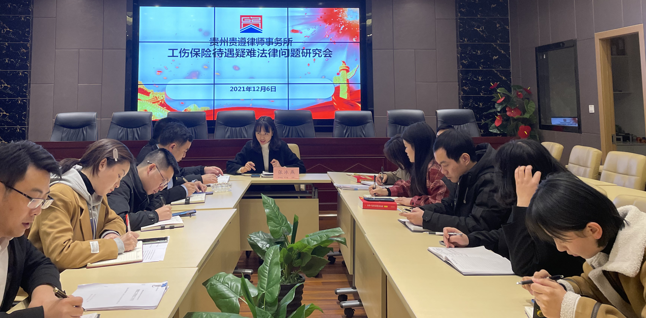 • 2021年12月6日,贵州贵遵律师事务所的每周例会按时召开,并由张冰燕律师进行了“工伤保险待遇疑难法律问题”的主题分享。