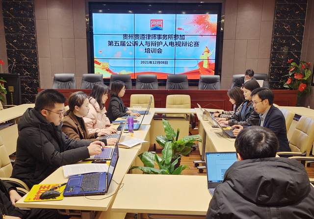 培训结束后,还组织大家集中收看了全国首届公诉人与辩护人电视论辩大赛的总决赛。贵遵辩论一队(肖莹、韩朝飞、令狐昊)、贵遵辩论2队(杨俊梅、彭晓艳、张绍勇)、贵遵辩论三队(夏小雪、娄俊、张冰燕)参加了当天的培训,并将代表贵遵律师出征比赛,参与总决赛的选拔。