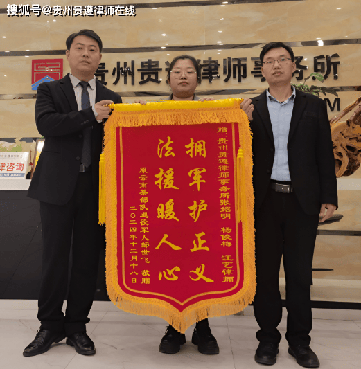 “感谢贵遵律师对退役军人的帮助,让我摆脱了这段婚姻的烦恼。”日前,退役军人邹某某来到贵州贵遵律师事务所,将一面印制有“拥军护正义,法援暖人心”的锦旗赠送给该所杨俊梅和汪艺等律师,以此表达对法律援助律师的感谢。