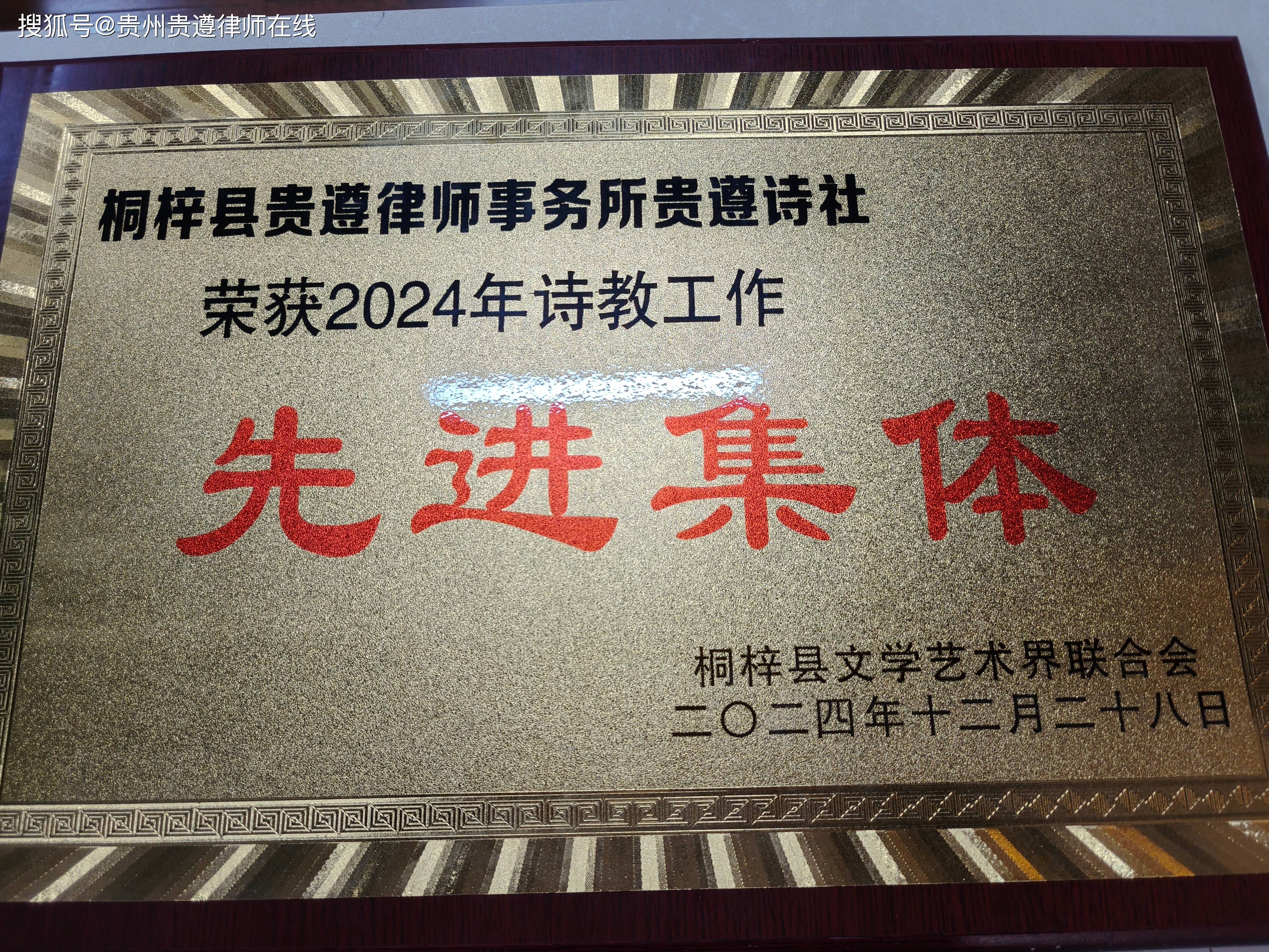 2024年12月28日,桐梓县诗词楹联学会2024年年会在桐梓县凤凰山大酒店圆满召开,贵州贵遵律师事务所荣获市(县)多项先进集体和先进个人表彰。