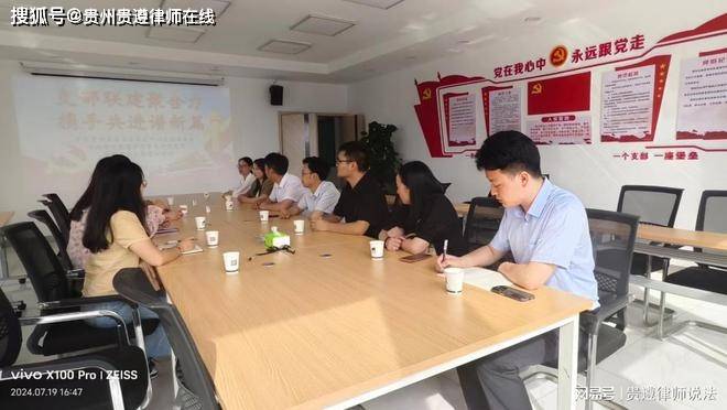 1、党建有实效,团队有活力。律所始终高度重视党建工作,以党建促所建、强团建,扎实开支党务工作。2024年初,律所制定了党务工作计划,所务工作计划,并严格按照时间推进落实。2024年1月3日,遵义市律师行业党委到贵遵律所调研,对律所年度党建工作计划给予充分肯定。2024年1月6日,遵义市天行健康复辅具适配服务有限公司到贵州贵遵律师事务所考察参观,并召开党务和业务合作发展座谈会,就如何开展党务与业务协同发展,以及企业文化和社会责任等进行了深入交流。2024年7月19日,律所党支部组织律师前往贵州贵阳考察交流,并与贵州名鉴司法鉴定中心党支部开展支部联建,结对帮扶,取得实效。