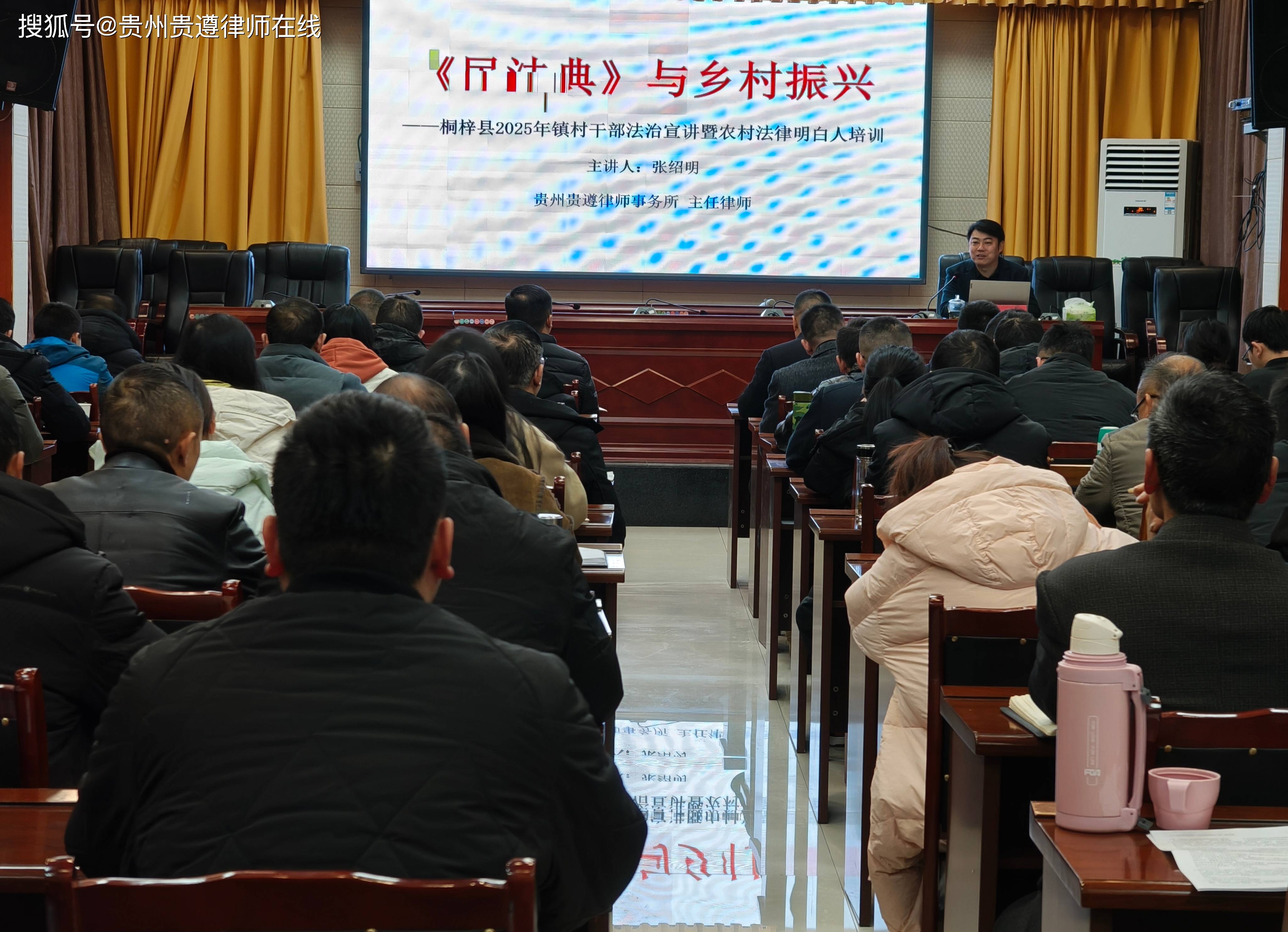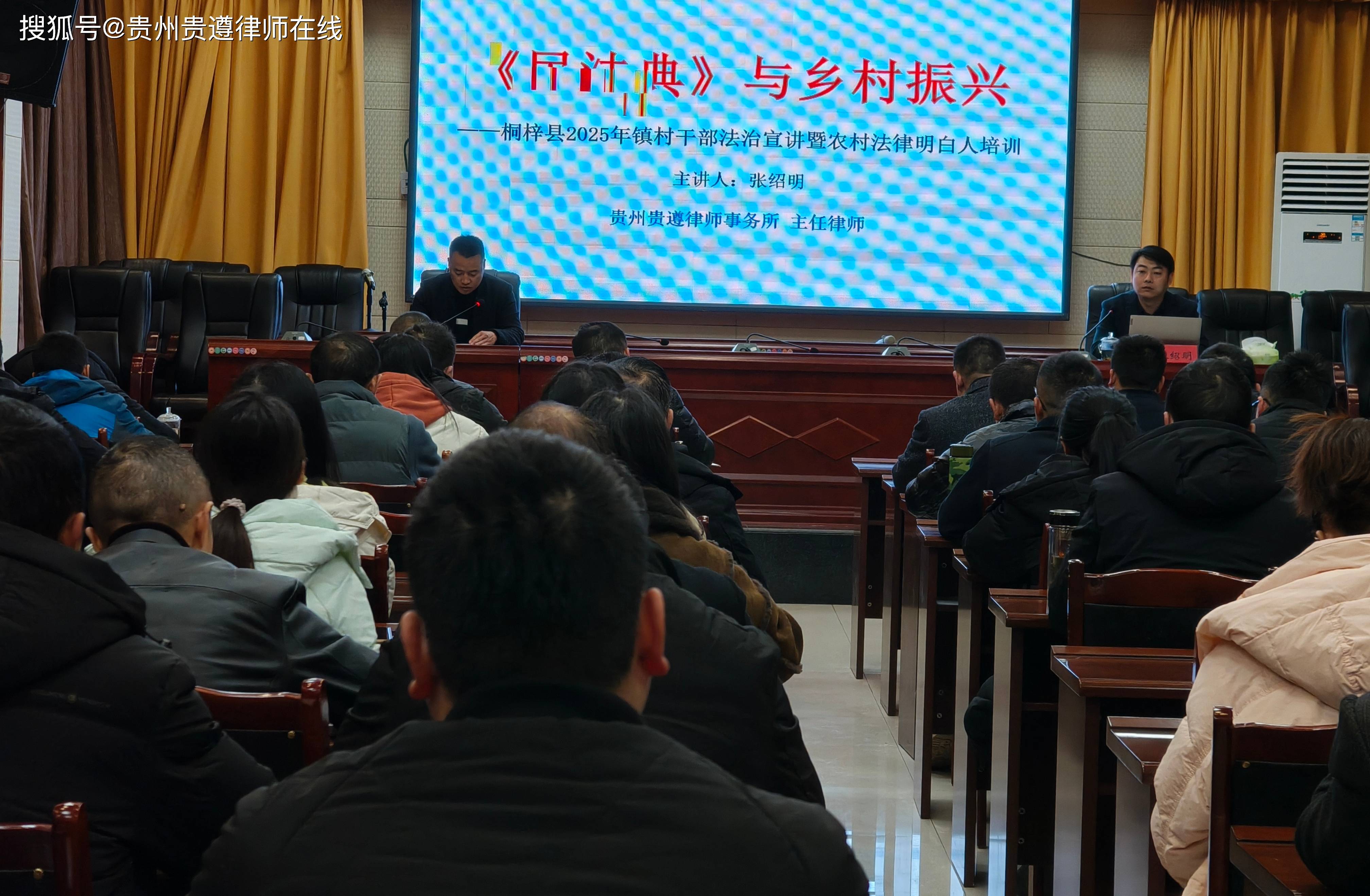 在培训中,遵义市人大代表、贵州贵遵律师事务所主任张绍明律师结合2025年全市两会工作精神,为全体参会人员讲解了民法典与乡村振兴。