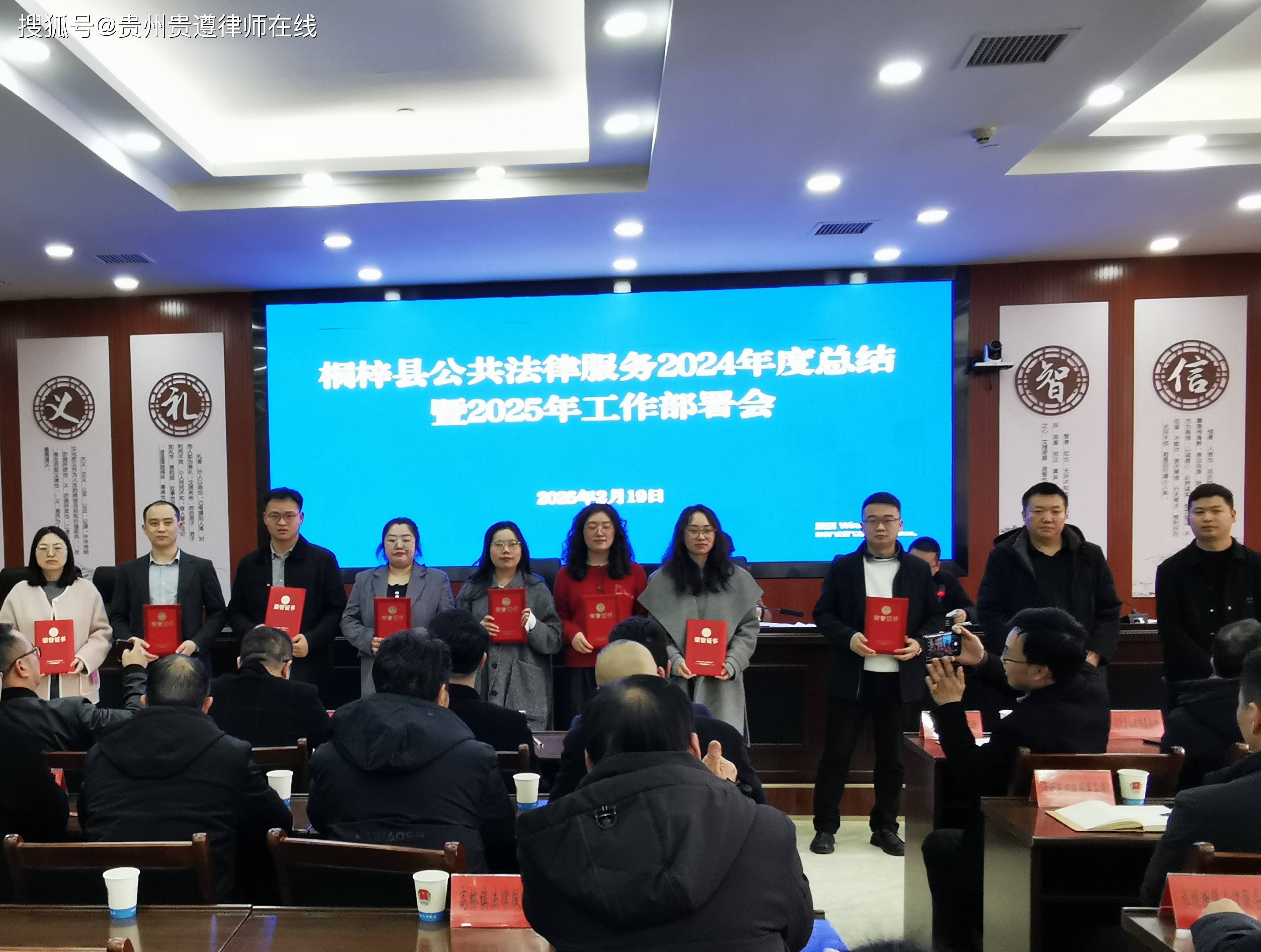 2025年2月19日,桐梓县召开2024年度公共法律服务工作总结暨2025年工作部署会,会议表彰了一起先进集体和优秀律师,贵州贵遵律师事务所多人荣获表彰。